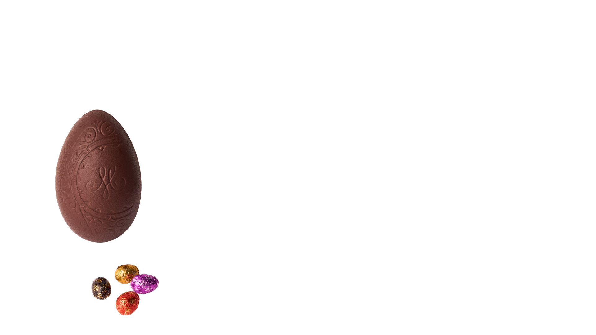 Dark chocolate Easter egg filled with little chocolate eggs (white chocolate, dark chocolate and milk chocolate).